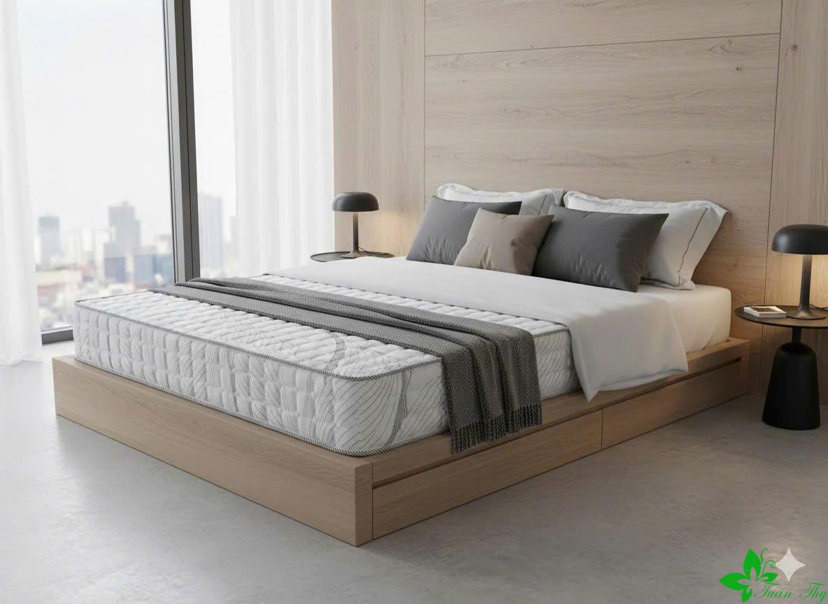 Nệm lò xo túi độc lập giúp phân tán lực tốt, hạn chế rung lắc khi trở mình. Tuy nhiên, cần lựa chọn loại có lớp đệm nâng đỡ tốt bên trên để không gây cứng lưng.