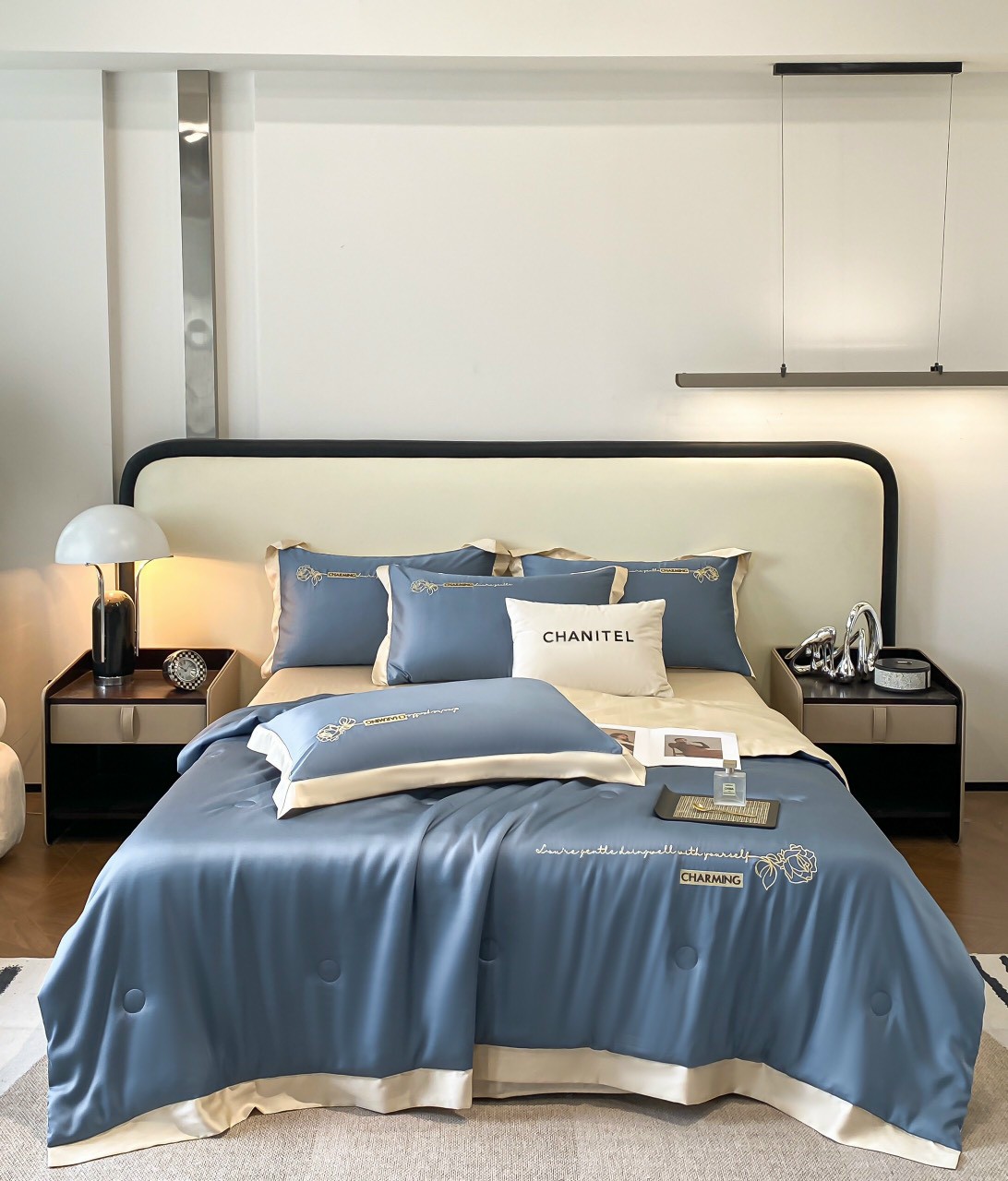 Bộ Drap mền màu xanh dương vip